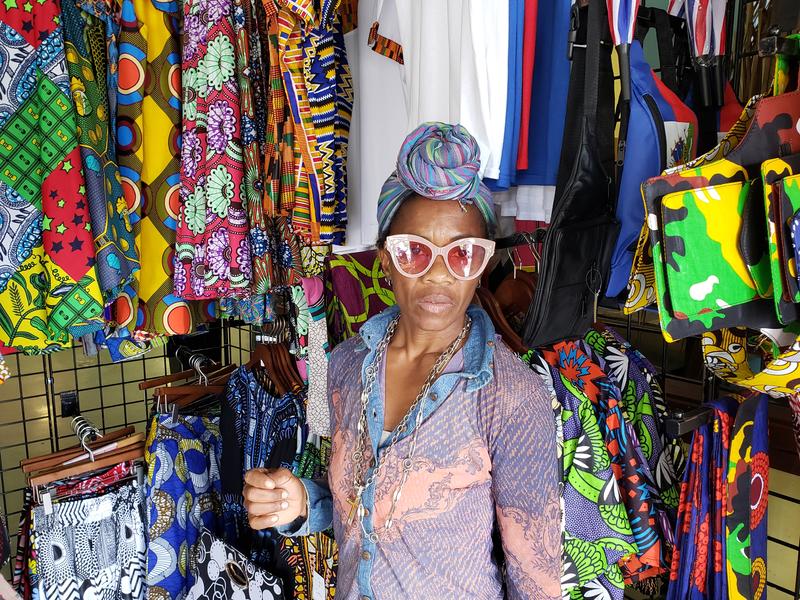 NADEGE: She now has a small booth at the Caribbean marketplace the city created to support local vendors, where she is a designer and reseller of vintage finds.