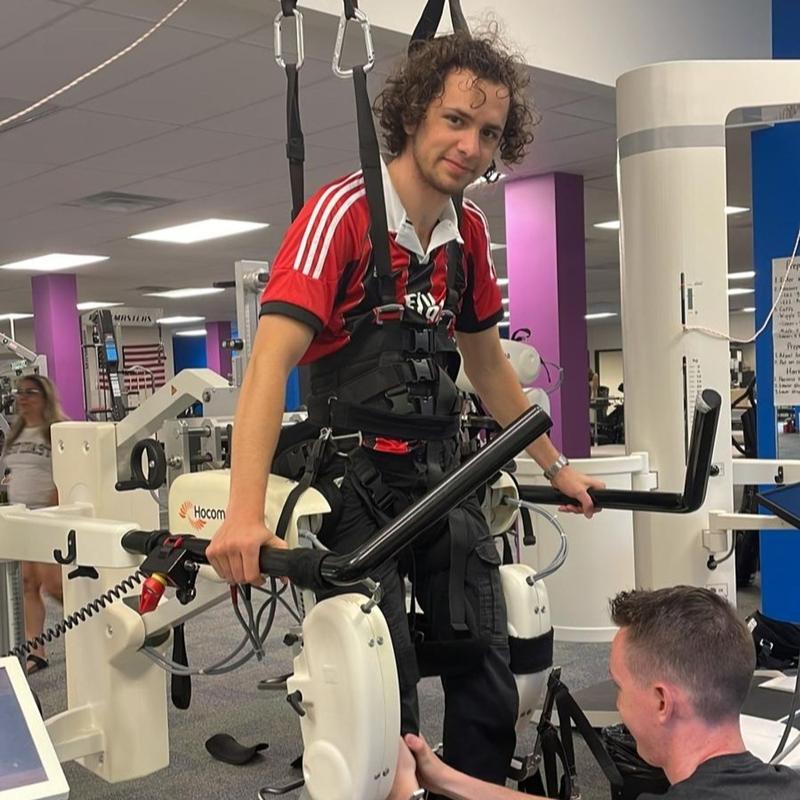 It was his last day in a physical rehab facility in Boston where he was training his body for a new life in a wheelchair. His favorite activity in rehab was a machine called a Lokomat. It's a machine that allows him to be standing upright, moving his legs as though he's walking in place. It's meant to keep his muscles active even though he can't move them on his own.