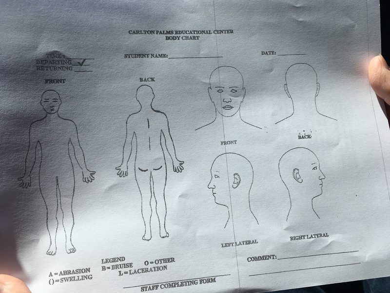 I learned that at Carlton Palms, most clients’ behavior plans include a blanket statement that allows staff to use of all kinds of available restraints. Reports show staff typically skip over the other steps — ways to calm someone down, give them space, try to communicate with them. They go right to the restraints.