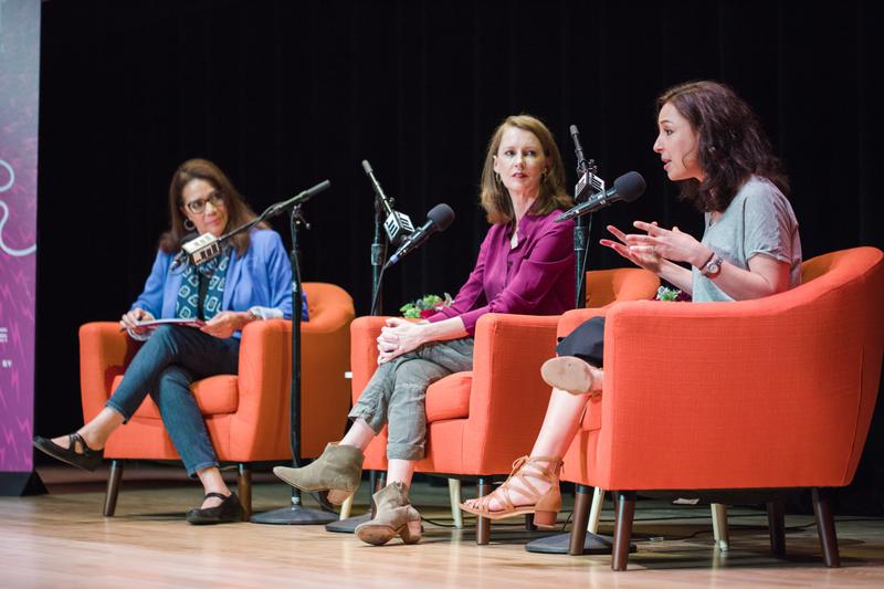 (L to R) NPR's Karen Grigsby Bates, Happier's Gretchen Rubin, and Note to Self's Manoush Zomorodi speaking at the 2017 Werk It Festival.