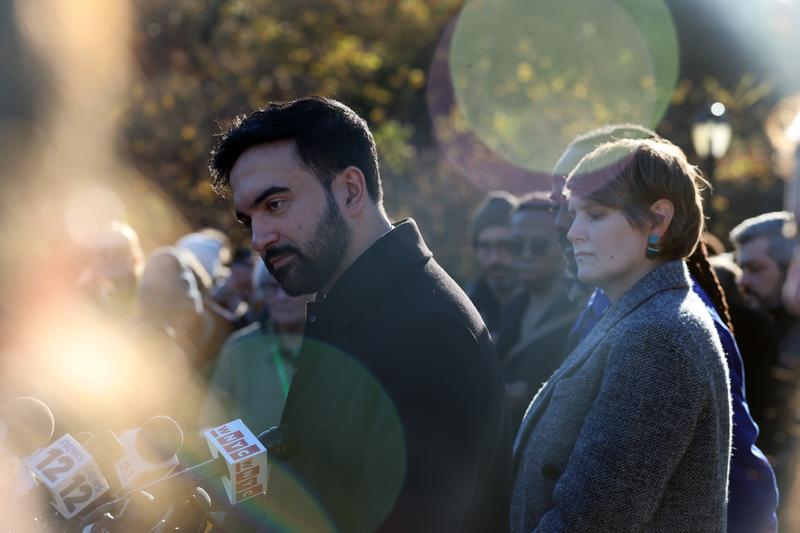 Mayor-elect Zohran Mamdani stands with some of the people he has appointed to help with his transition to City Hall on November 24, 2025 in New York City.