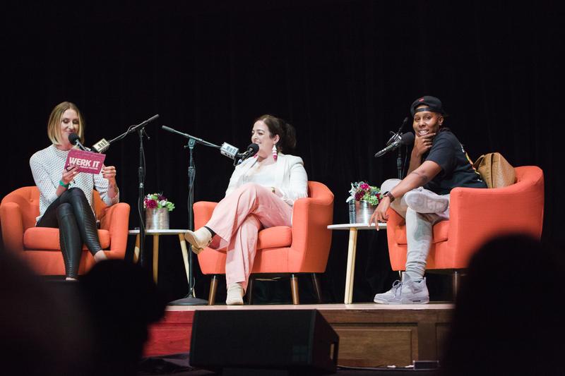 (L to R) Nora McInerny, Maeve Higgins and writer/actor Lena Waithe speaking at the 2017 Werk It Festival.
