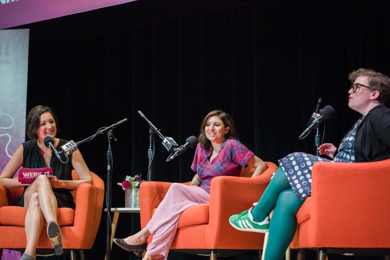 (L to R) WNYC's Mary Harris, producer Starlee Kine, and The Illusionist host Helen Zaltzman speaking at the 2017 Werk It Festival.