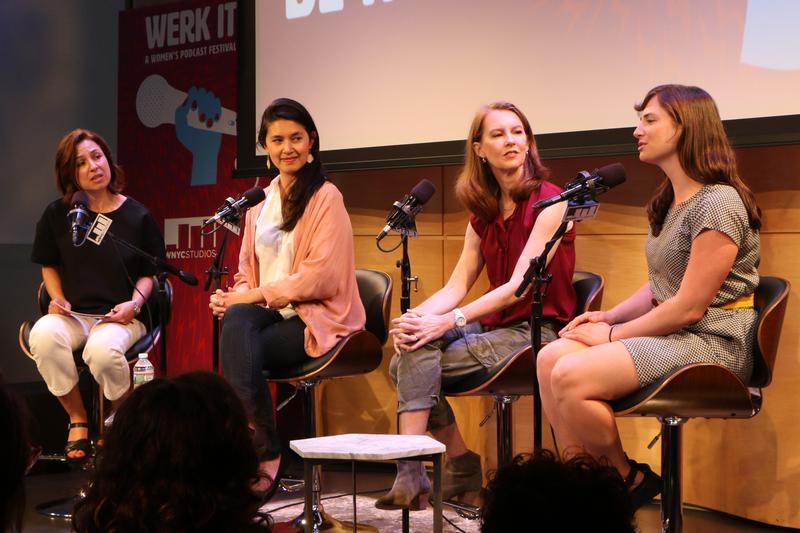 From left, Manoush Zomorodi, Megan Tan, Gretchen Rubin and Andrea Silenzi in conversation at Werk It